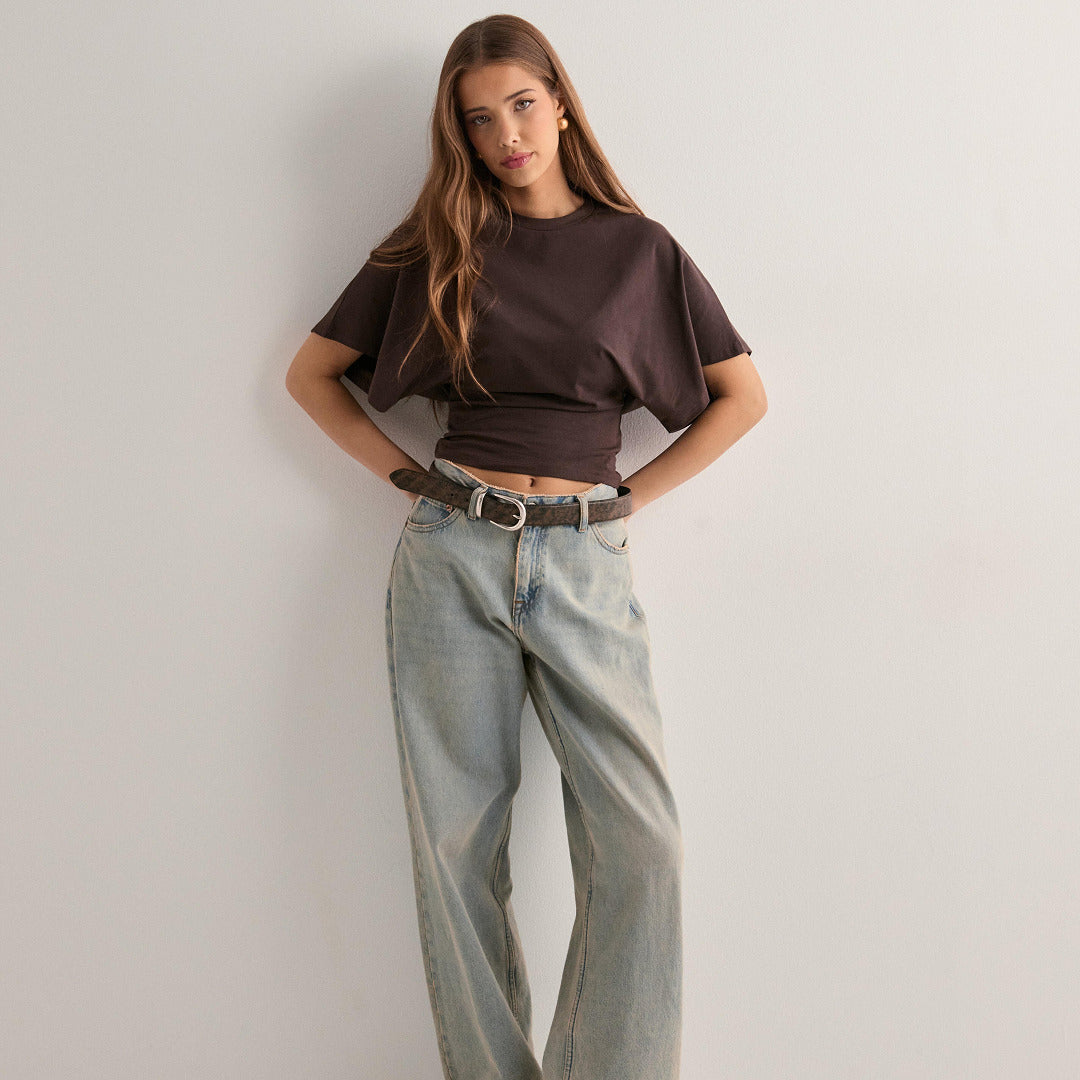 Das Elegantes Schlagoberteil ist die perfekte Mischung aus stilvoller Lässigkeit und femininer Ausstrahlung. Mit seinem ausgestellten Ärmeldesign und der figurbetonten Silhouette bringt es deinen Alltagslook auf ein neues Level – ganz gleich, ob im Büro oder bei einem Cafe-Date.