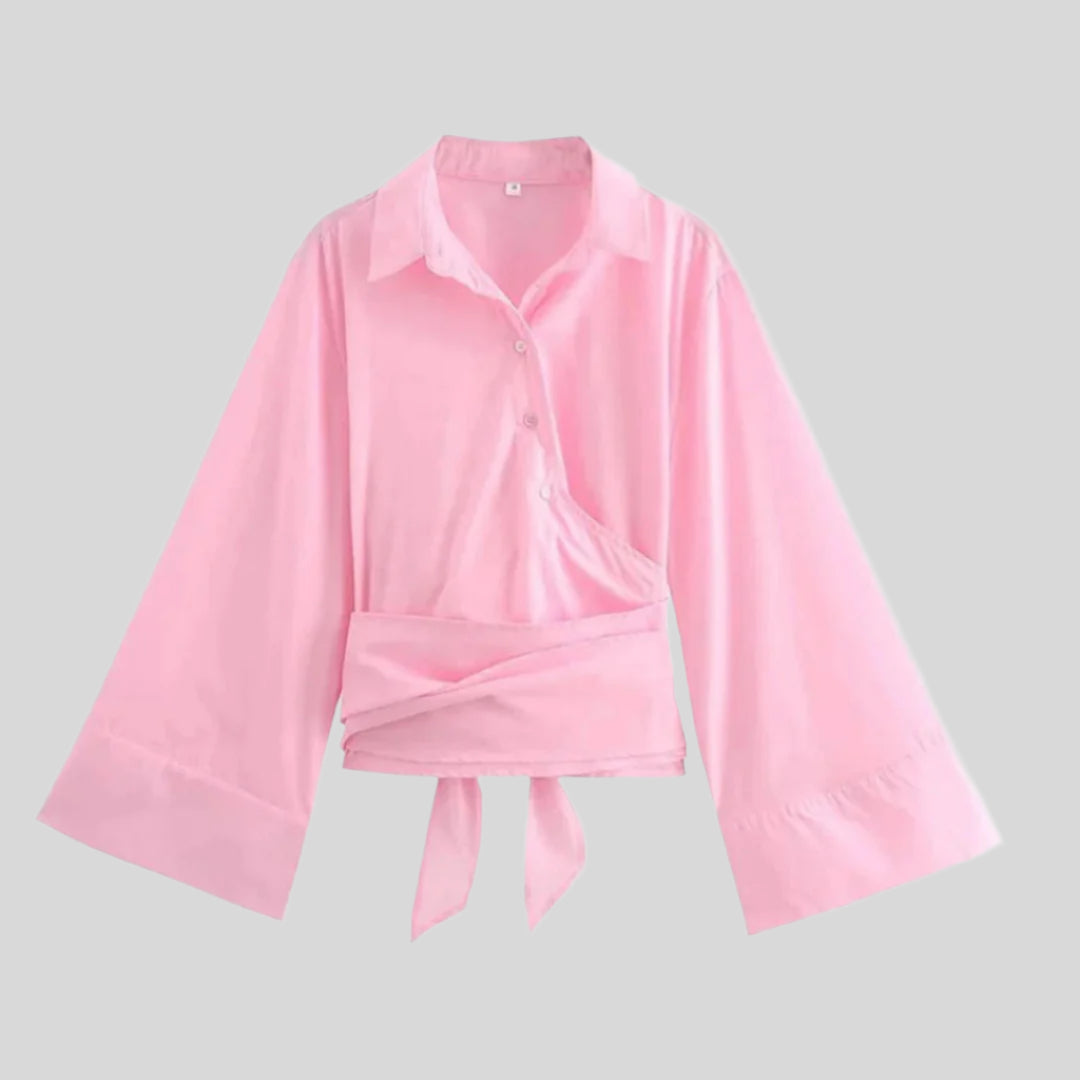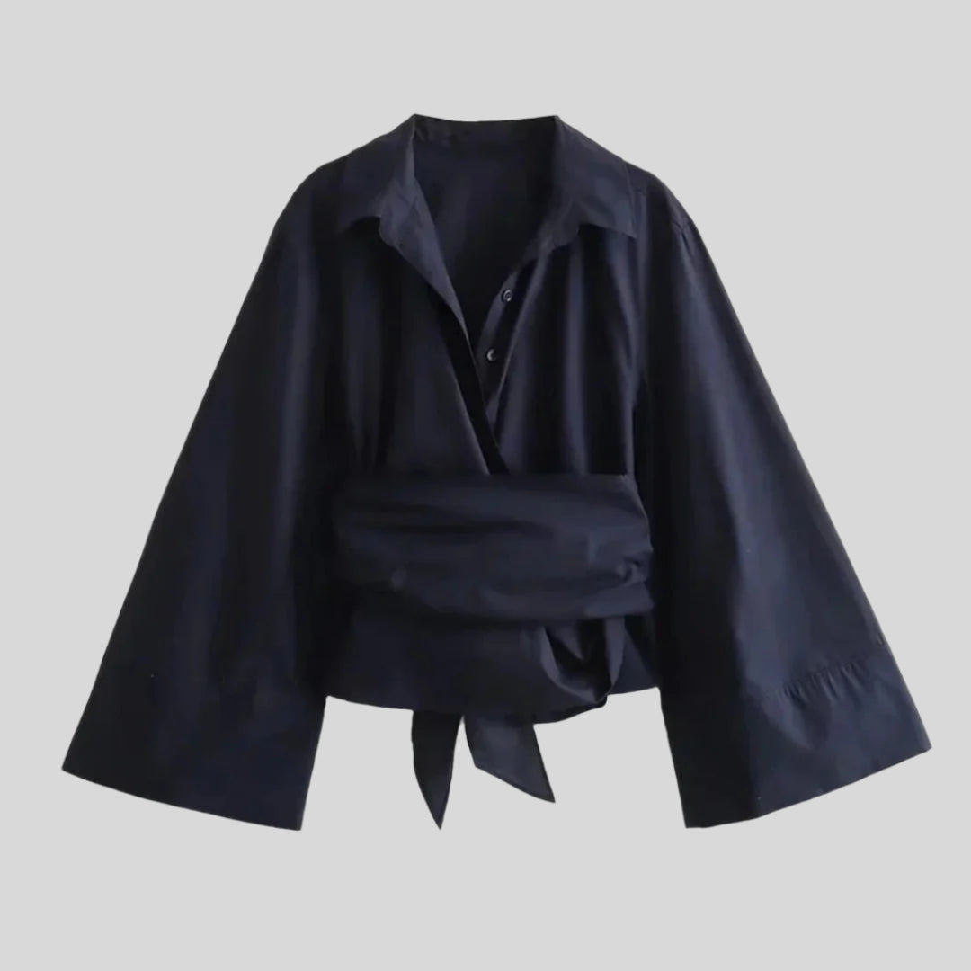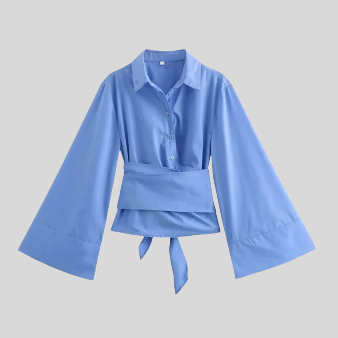 Kimono-Hemd mit Glockenärmeln und Knopfleiste | Breiter Schleifengürtel
