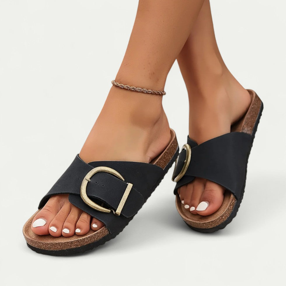Orthopädische Pantoletten Damen mit großer Schnalle