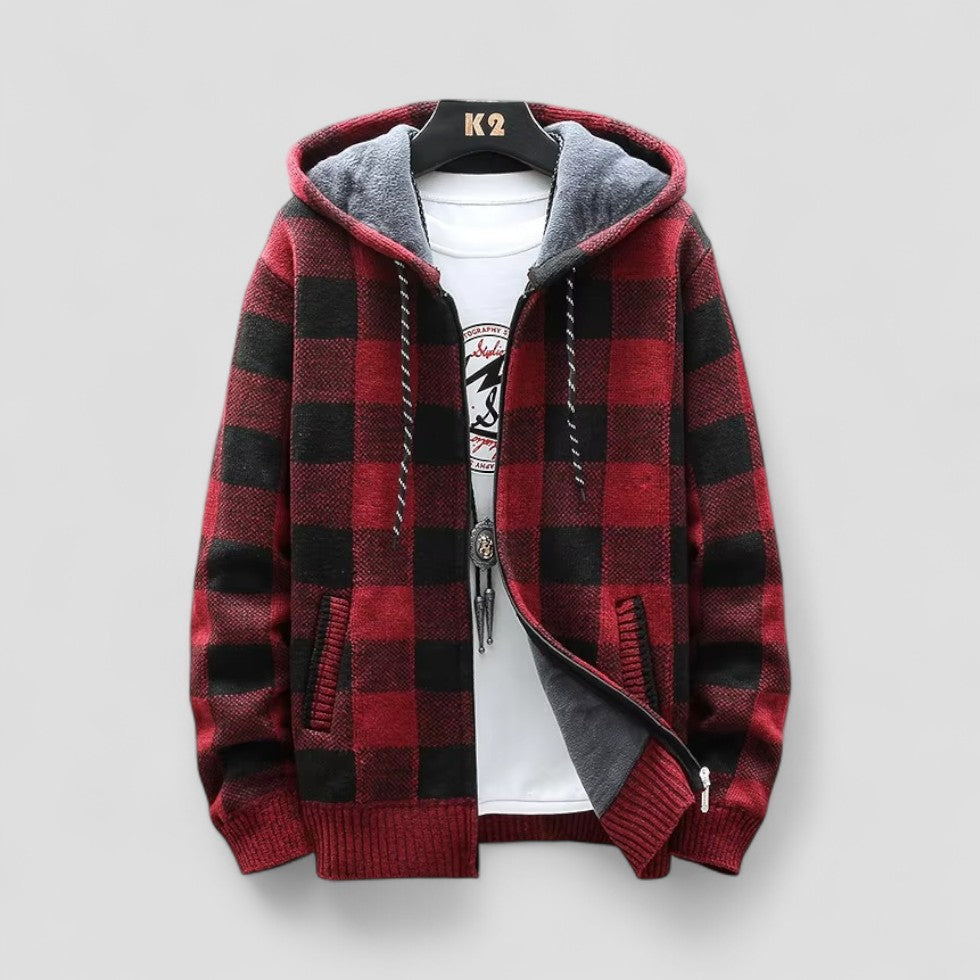 Herren Winter Karierte Strickjacke mit Kapuze und Fleecefutter