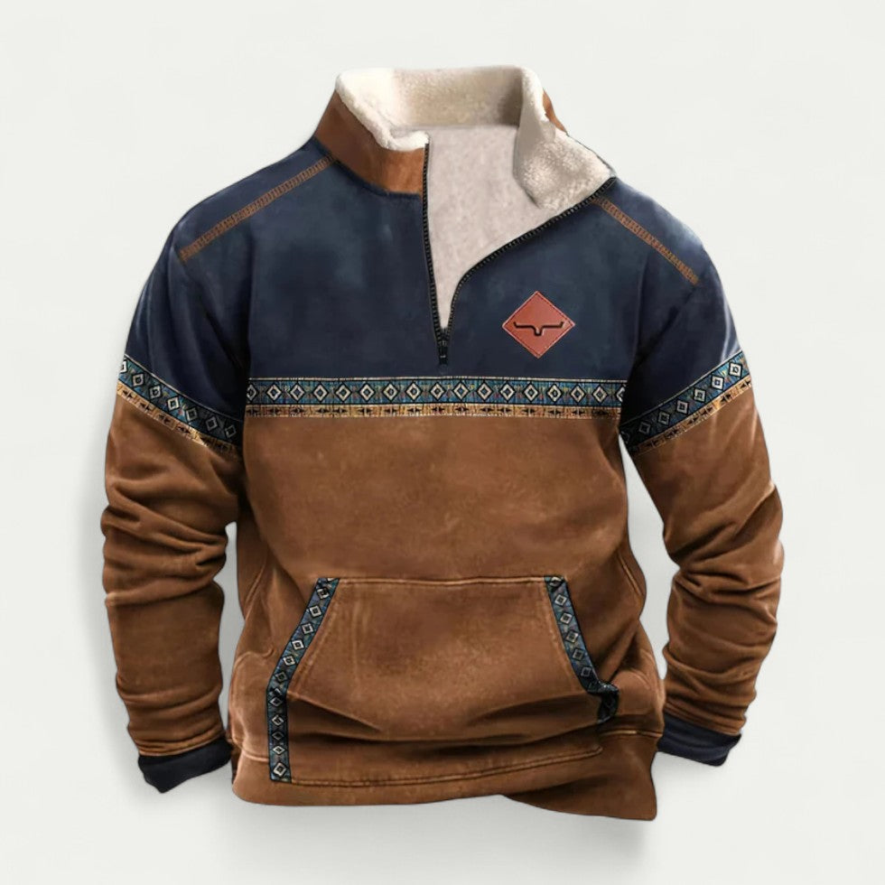 Ein Pullover, der Funktionalität und modisches Design gekonnt vereint. Mit seinem warmen Fleece-Innenfutter und dem halben Reißverschluss bietet er angenehme Wärme und flexible Tragemöglichkeiten. Die dekorativen Musterdetails setzen stilvolle Akzente, die den Look aufwerten und ihn alltagstauglich wie auch citytauglich machen. Perfekt für entspannte Freizeitmomente oder als Eyecatcher im urbanen Outfit.