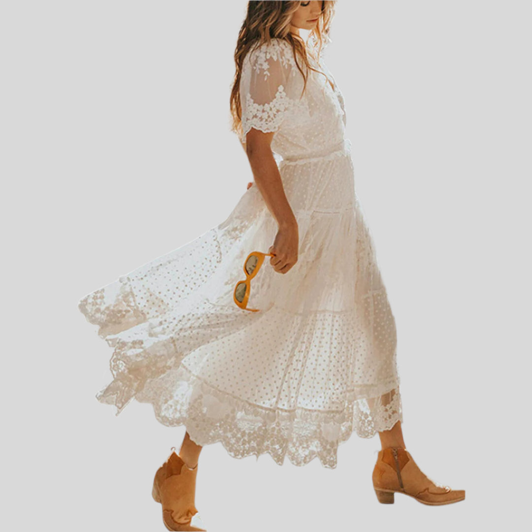 Grace | Damen Elegantes V-Ausschnitt Kurzarm Kleid | Midi
