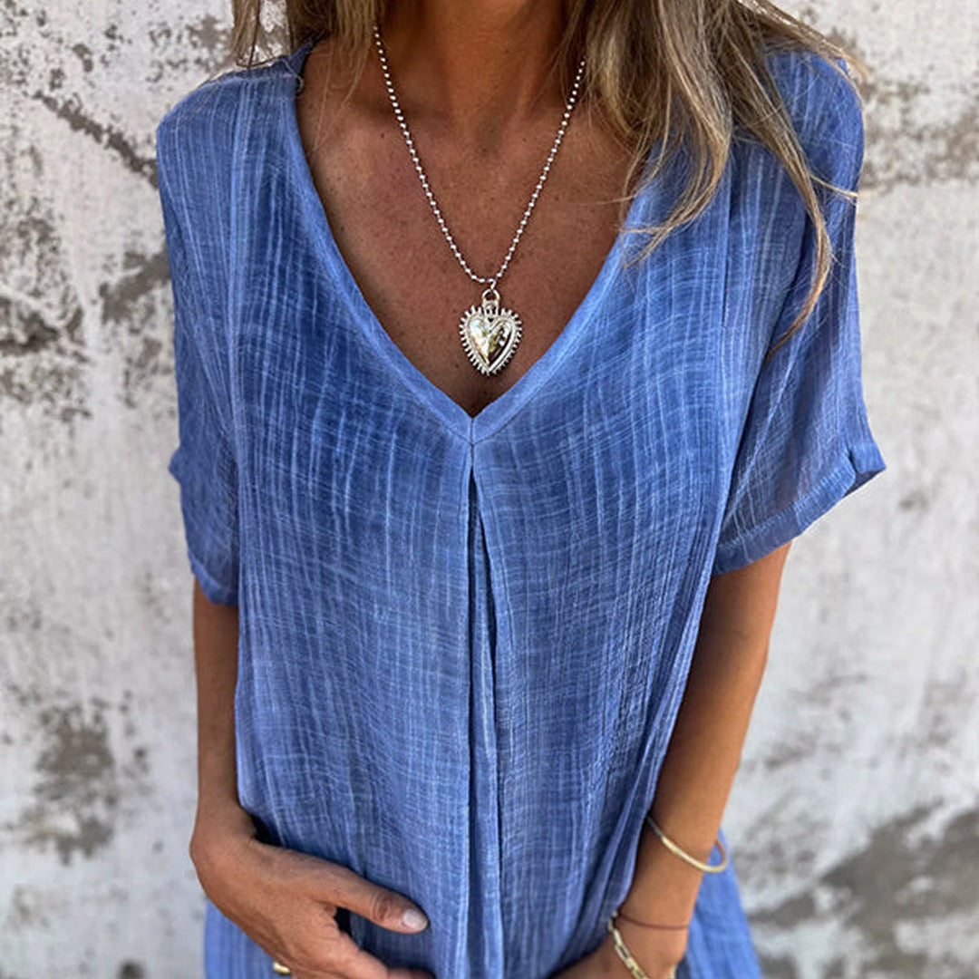 Dieses lässige Sommerkleid mit kurzen Ärmeln ist der perfekte Begleiter für warme Tage. Sein lockerer Schnitt sorgt für maximalen Tragekomfort, während das cleane Design mit jeder Stilrichtung harmoniert. Ob am Strand, beim Stadtbummel oder auf der Gartenfeier – dieses Midi-Kleid bringt dich stilvoll und entspannt durch den Sommer.