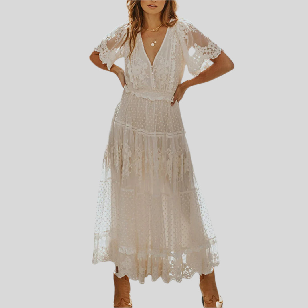 Ophelia | Damen Boho-Maxikleid | V-Ausschnitt